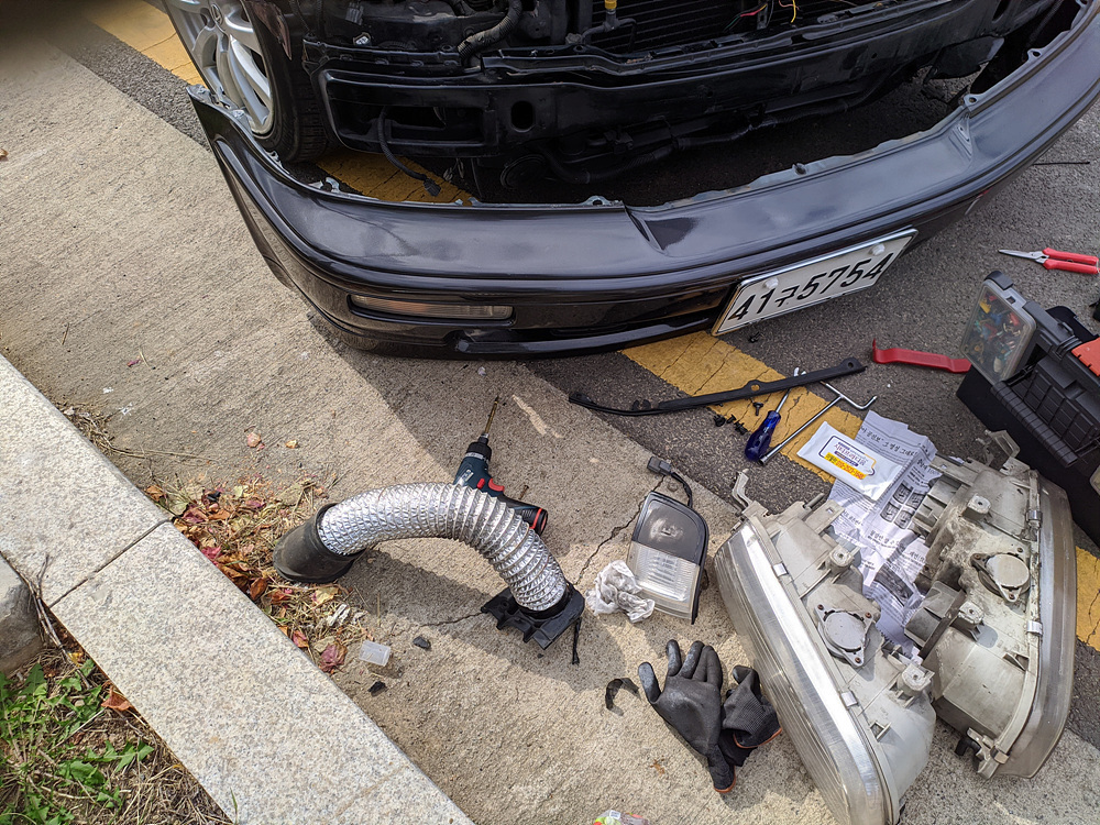 그래도 뜯어본 경험이 있어서 이번엔 동네 공원 주차장에서 작업을 했습니다.