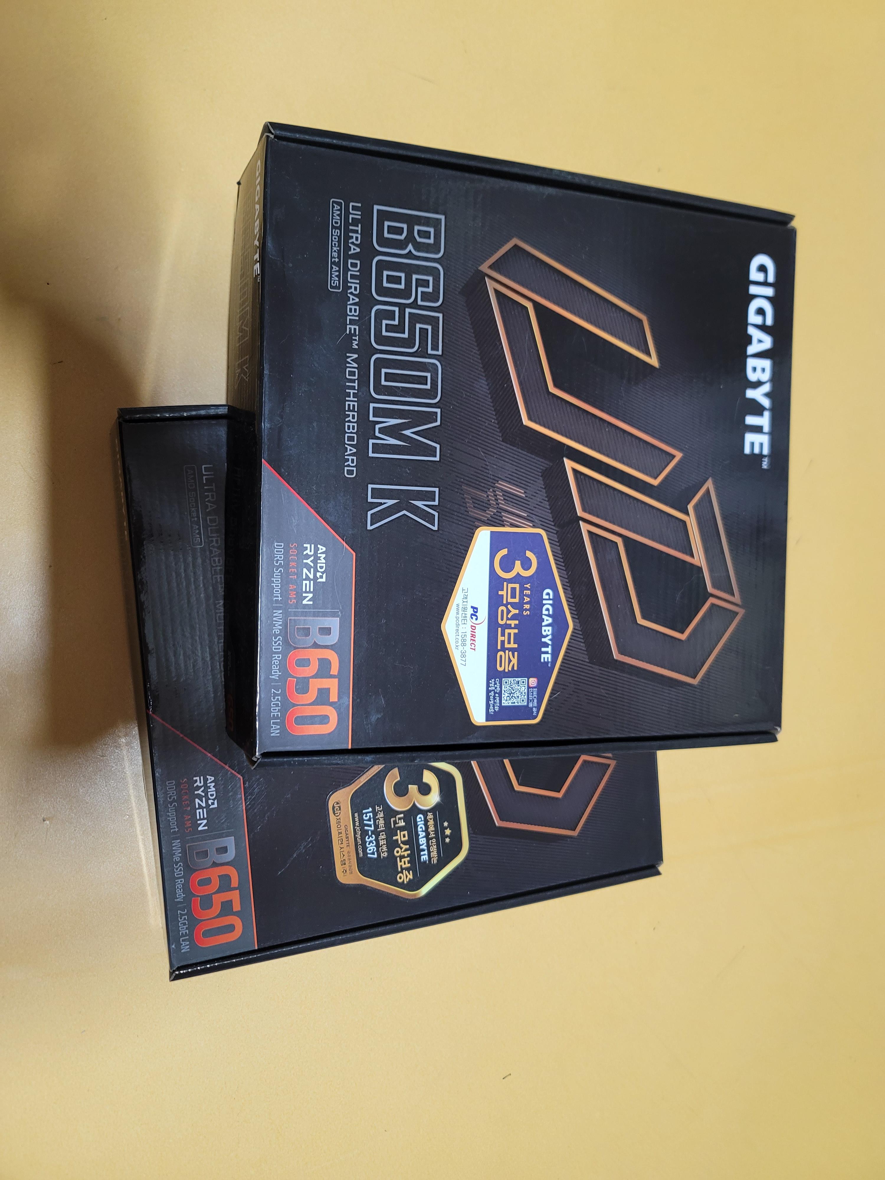 | 기존 구매한 기가바이트 B650M K, PC다이렉트 보드는 1.0 버전이고 이번에 구매한 건 제이씨현 1.1 버전 보드이네요. 이걸 몰라서 기존 사용하던 바이오스로 업데이트하려고 시도하다 오류가 계속 나서 고생 좀 했습니다. |
